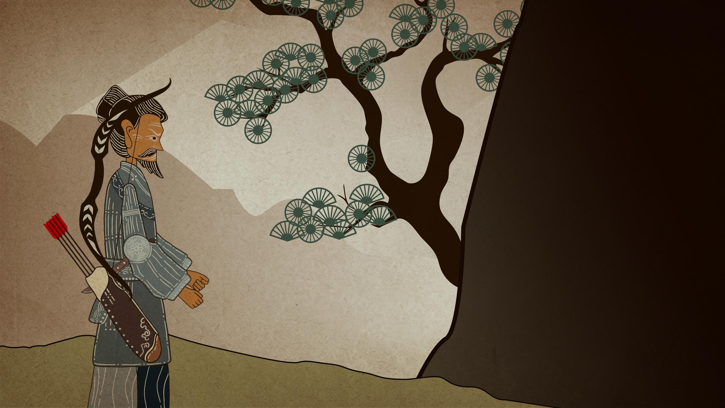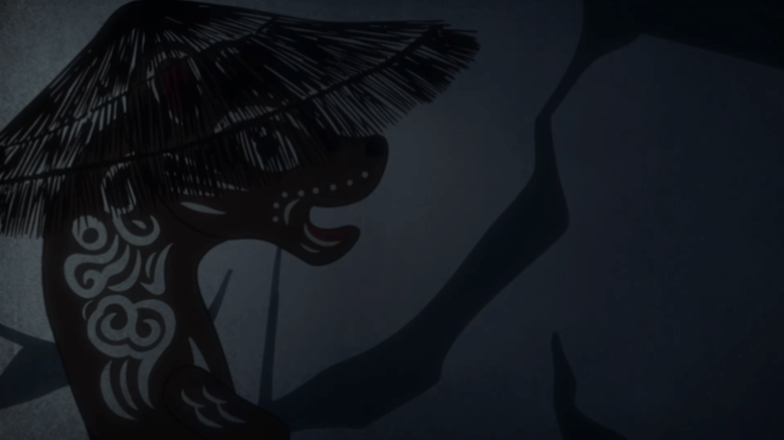Create an animation in the style of Chinese shadow puppetry, tell a folk story from Northeast China about the weasel seeking a title.