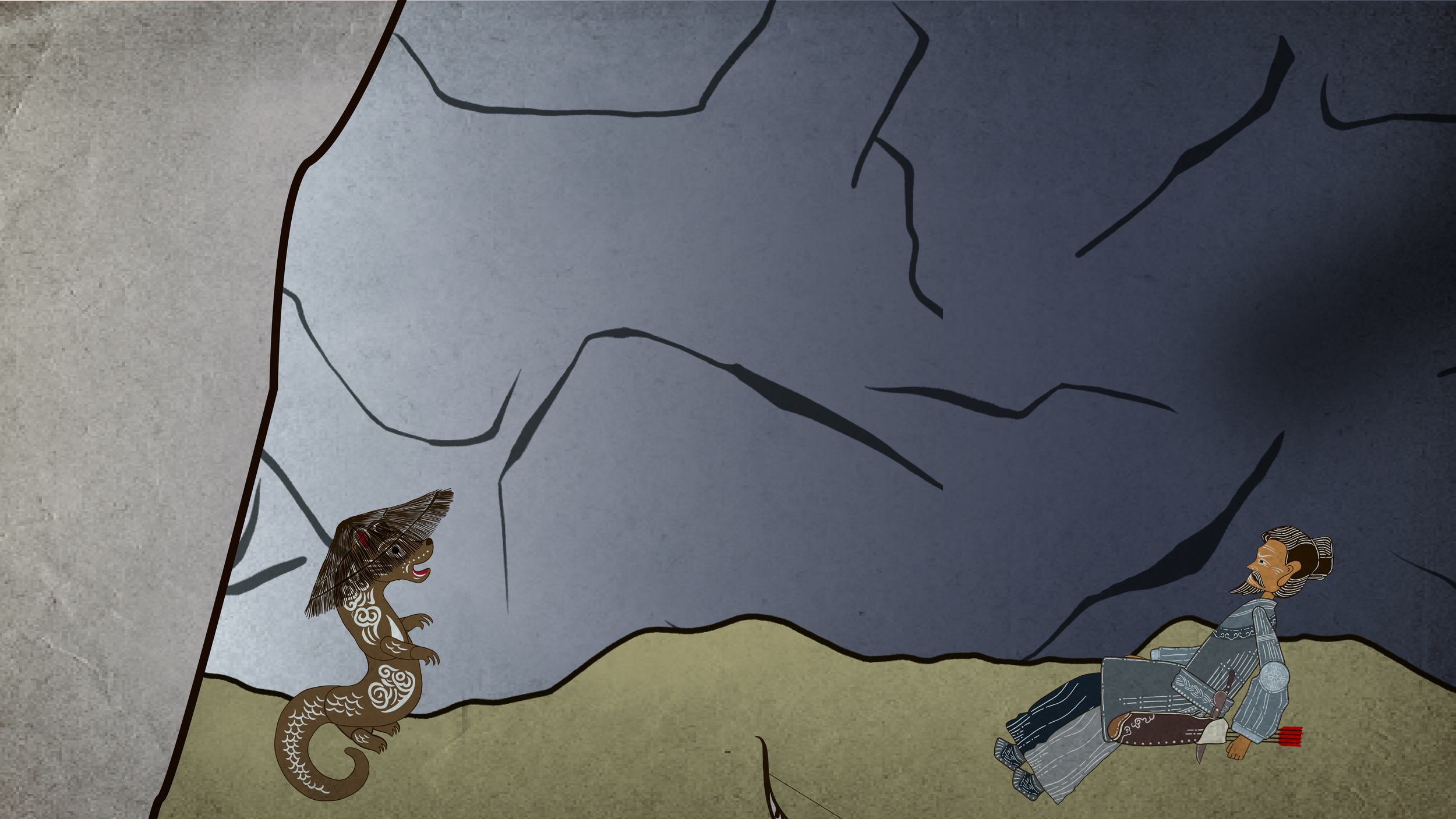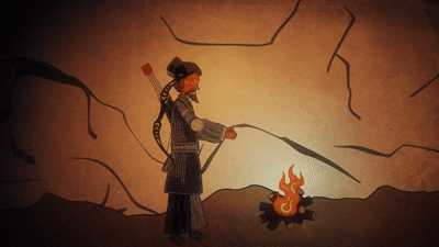 Zhao Qian made a living hunting weasels. One time, while hunting in the mountains, he chased a weasel deep into the forest. As night was falling, he found a small cave to spend the night. After darkness set in, Zhao Qian lit a bonfire for warmth. Suddenly, he felt as though someone was watching him. Turning around, he saw a giant human-like shadow on the rock wall behind him. Calming himself down, he realized it was a weasel.