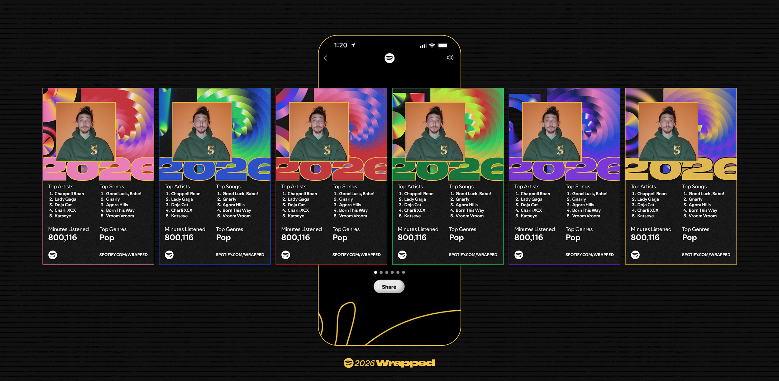 The goal is to turn yearly listening data into a playful identity system that feels expressive, immersive, and aligned with how people connected to sound in 2026.